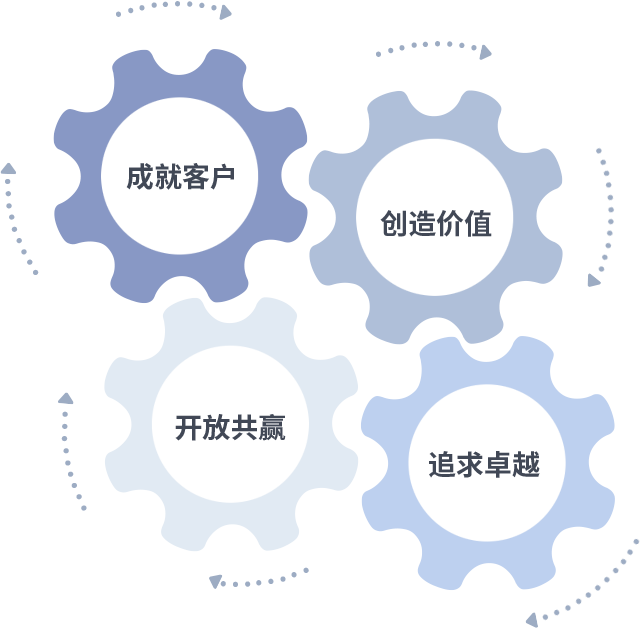 成就客户是一切决策的出发点,创造价值是衡量所有工作的标准,追求卓越是CC彩票网做事做人的态度,开放共赢是CC彩票网的格局也是最终的结果。价值观的齿轮环环相扣,推动着组织里的每个人不断向前。